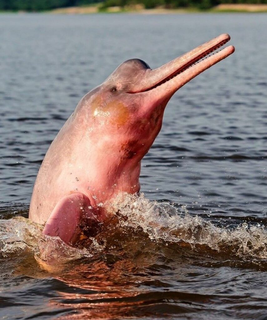 Cá heo sông hồng (Pink River Dolphin) là biểu tượng của sự huyền bí trong sông Amazon. Màu sắc của chúng thay đổi theo tuổi tác và tâm trạng, khiến nhiều bộ lạc bản địa tin rằng chúng là hiện thân của linh hồn.